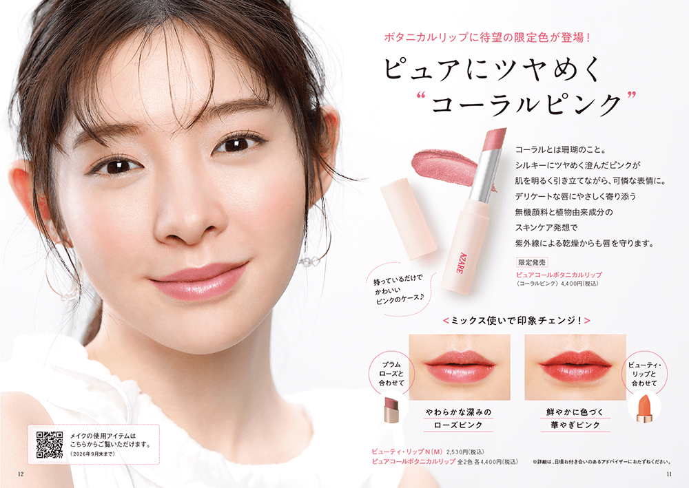 人気のボタニカルリップ、待望の限定色は〈コーラルピンク〉。ツヤめく澄んだピンクが肌を明るく引き立てながら、若々しく可憐な印象に。ミックス使いによるアレンジ方法などもご紹介します。